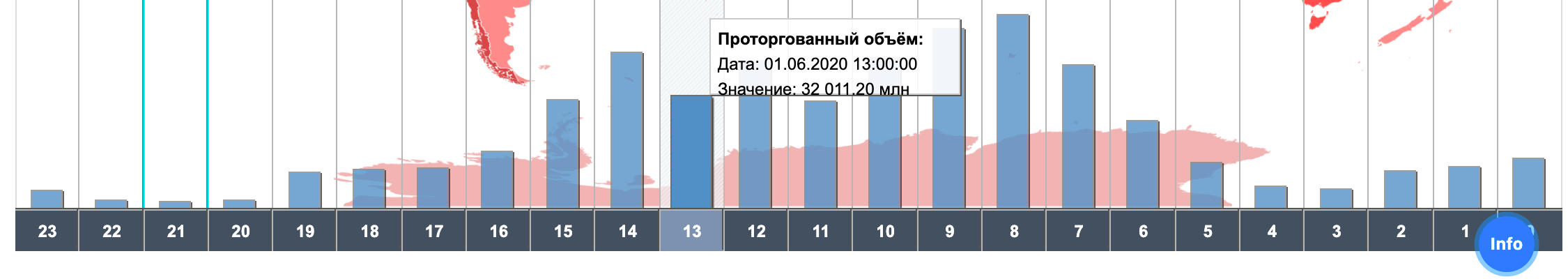 Посмотреть данные по объему можно при наведении на нужное время